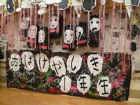 1年生の学年企画は「おばけやしき」。受付でもらった『お札』を握りしめ、恐る恐る中に入るお客さん。中にはお化けに扮した生徒達が!お化け達は全力で驚かし、中からは笑い声やら悲鳴やら、いろいろな声が漏れ聞こえてきました。