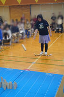 全校企画は「モルック」を行いました。モルックとは1から12までの数字の書かれた木のピンを、モルックと呼ばれる木の棒を投げ、点数を競う競技です。それぞれの学年に来場者から助っ人を入れて、会場を巻き込んでの試合です。たくさん倒すのを狙う人もいれば、一本狙いで点数を稼ごうとする人もいて、こちらも大変盛り上がりました。